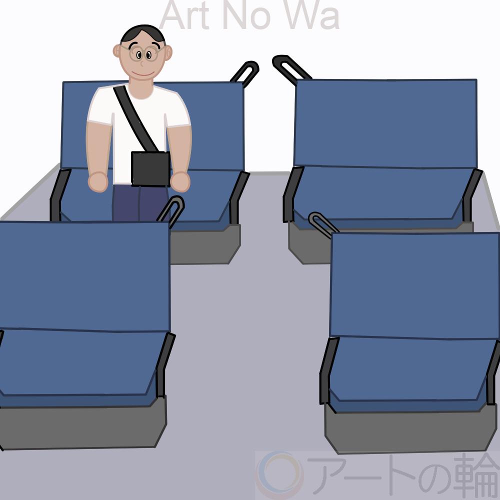 人がバスに乗っている所を描きました。オリジナル作品です。