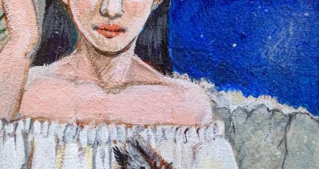 猫が好きです。 作品はアクリルとオイルパステル、色鉛筆などを使用した混合技法です。