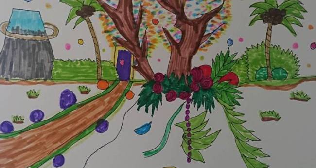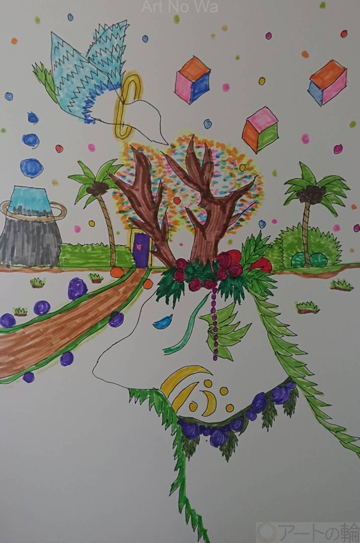 非現実,自然,山,空,過去,現在,未来,春,夏,秋,冬,赤,オレンジ,黄色,緑,水色,青,紫,白,動物,植物,想像上の生き物,明るい,たのしい,かわいい,わくわく,2D