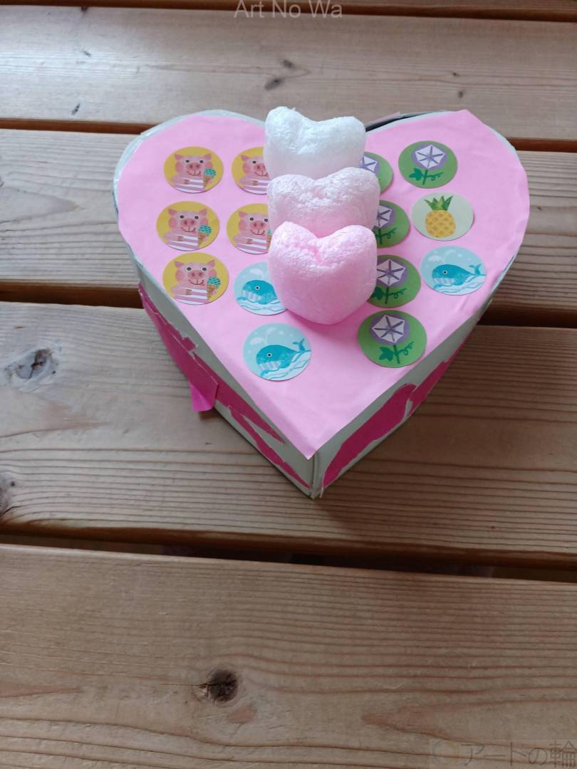 一番好きなイチゴのケーキをイメージして作りました。色んな種類のピンク色の紙や発泡スチロールを使ったところがこだわりです。