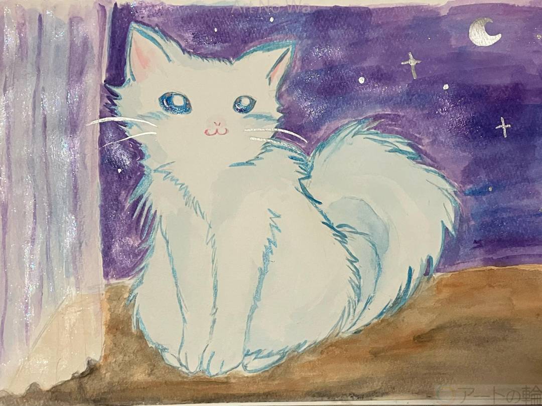 星月が輝く夜。ねこさんは、まるで子守唄を唄うように、あなたに優しい眼差しを向けるのです。