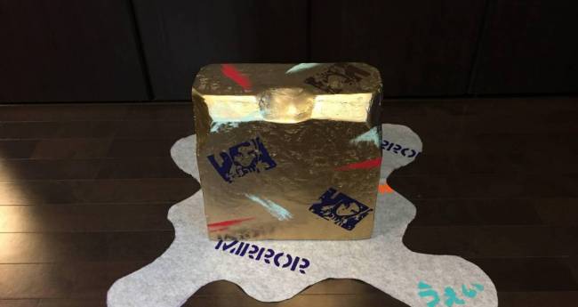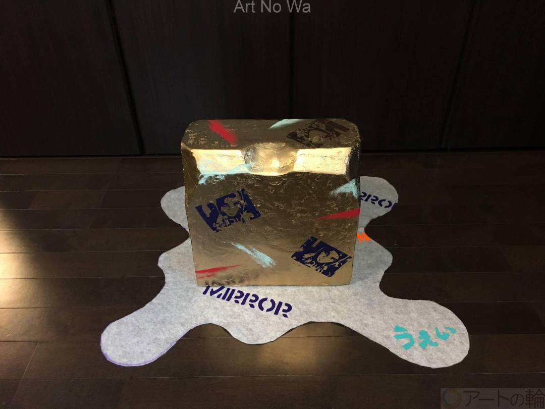 発泡スチロールにアルミホイル巻いてFRPで包み、フェルトを敷き、シルクスクリーンや ステンシルした造形物。