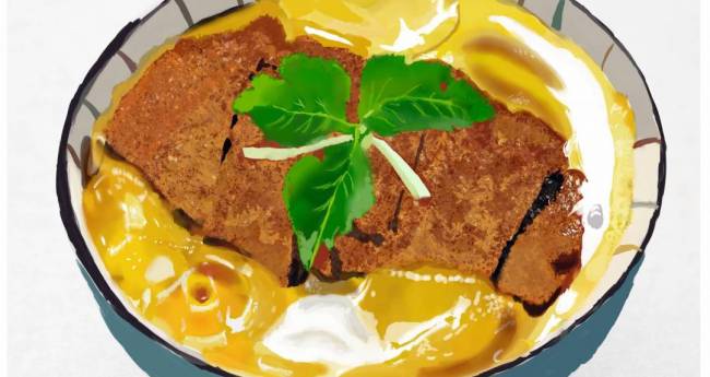 玉子の艶やカツのサクサク感、おいしそうに描けました