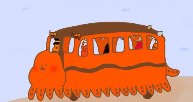 非現実,自然,海,赤,青,動物,想像上の生き物,明るい,たのしい,かわいい,わくわく,2D