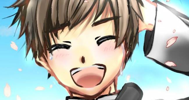 卒業式に、後輩に見送られながら、泣きながら照れてるようすを書きました。