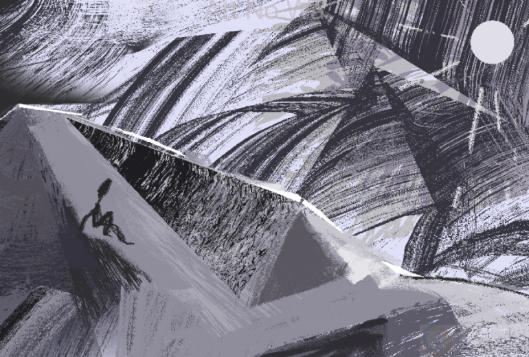 非現実,屋外,自然,山,オレンジ,緑,風景,明るい,2D