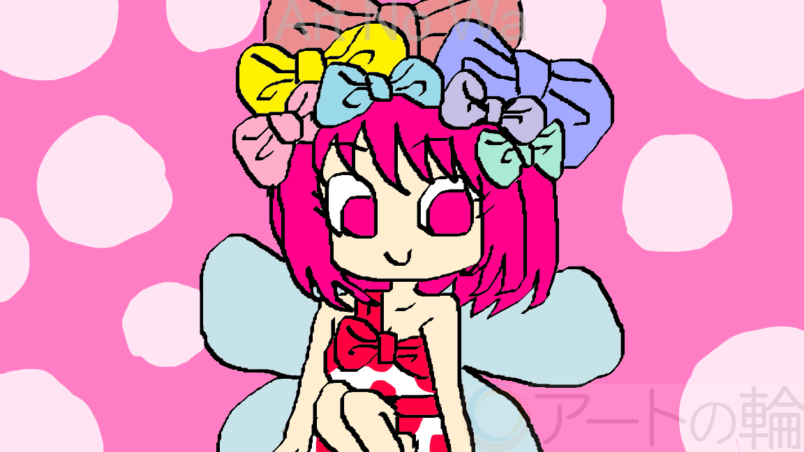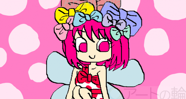 リボンを沢山頭につけている妖精の女の子を描いてみました。Windowsに最初からついているペイント3Dで久々にマウスで描きました。