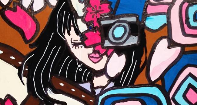 シャープペンとマジックペンとアクリルガッシュを使って、今までの学校生活の思い出を振り返っている女の子を描いてみました。