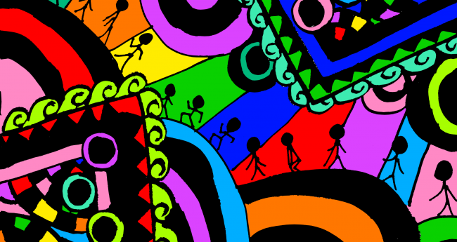 人生を山や谷に例えて山を登っている様子を描きました。ソフトはファイアアルパカで描きました。