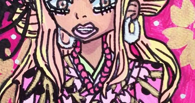 通販で買ったアクリルマーカーとシャープペンとシグノのホワイトなどを使って、ギャルな花魁を描いてみました。