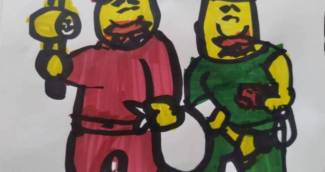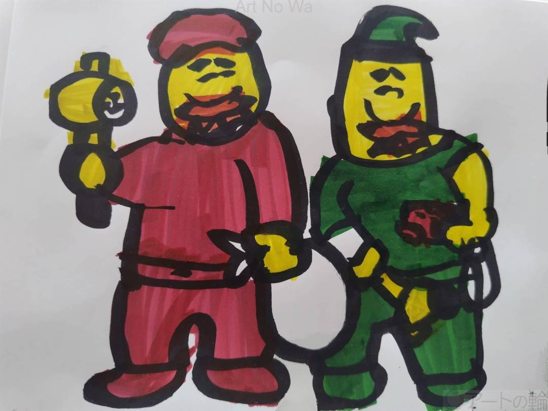非現実,屋内,屋外,春,正月,季節の行事,4月,赤,黄色,緑,人物,想像上の生き物,明るい,たのしい,かわいい,わくわく,どきどき,2D