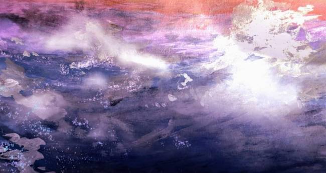 穏やかに波打つ夕方の海を描いた作品です。アクリルガッシュで描いた模様にイラスト制作アプリで加筆しました。
