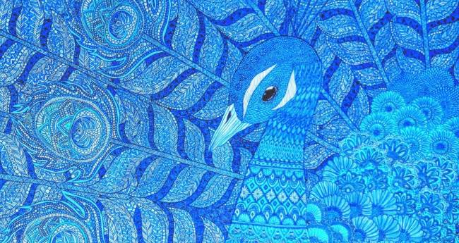 先に描いた「孔雀」をデジタルで色調整、リサイズしたものです。