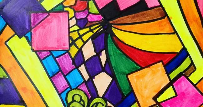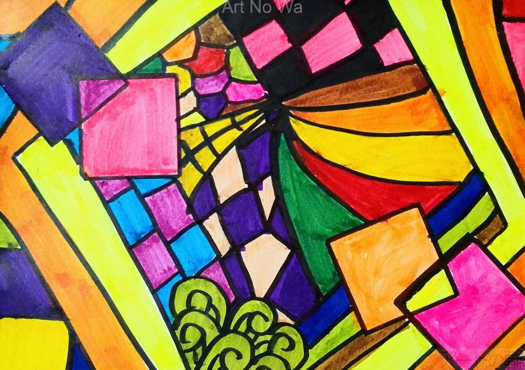 プロッキーの18色セットを使って、まるで吸い込まれそうな不思議な世界を描いてみました。