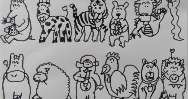 現実,非現実,屋内,過去,現在,未来,正月,季節の行事,黒,動物,想像上の生き物,明るい,たのしい,かわいい,わくわく,どきどき,びっくり,2D