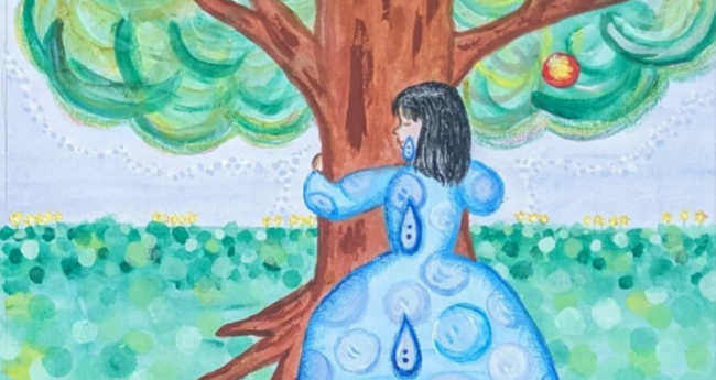 涙は、優しい水となって魚を育てた。落ち葉は、土を肥やし実らせた。そのきらきら輝く空と土と水に、また涙する。痛みも、苦しみも、喜びも、嬉し涙も、哀しみも…。傷だらけの魂に、曇りなき空から届いた想いが幾度も支えてくれて…。すべてが、ときを経て、豊かな幸せへとつながった。小鳥も憩う陸になった。いつか、気の遠くなるような先の見えないながいながいときをかけて…。