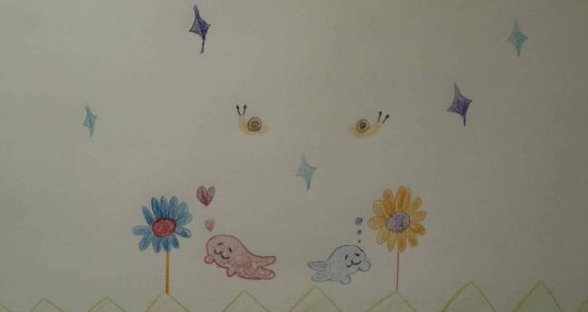 お花を見てるアザラシとカタツムリ