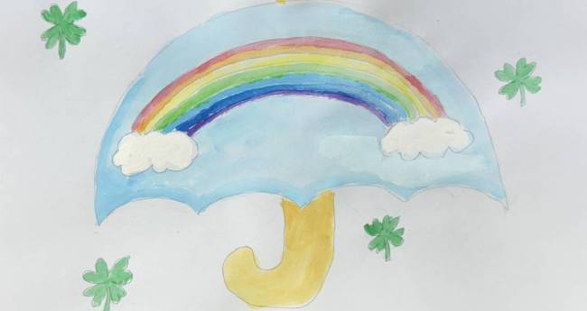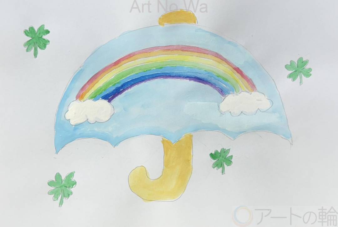 幸せの象徴かのような虹や四つ葉のクローバーを描きました。