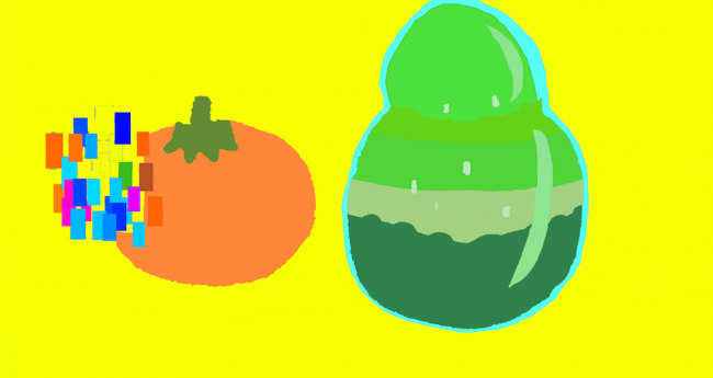 非現実,自然,オレンジ,黄色,緑,水色,植物,明るい,たのしい,わくわく,2D