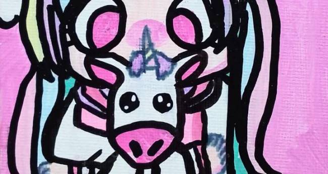 ユニコーンを抱きしめている女の子をゆめかわに描いてみました。