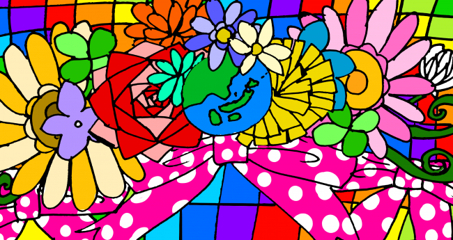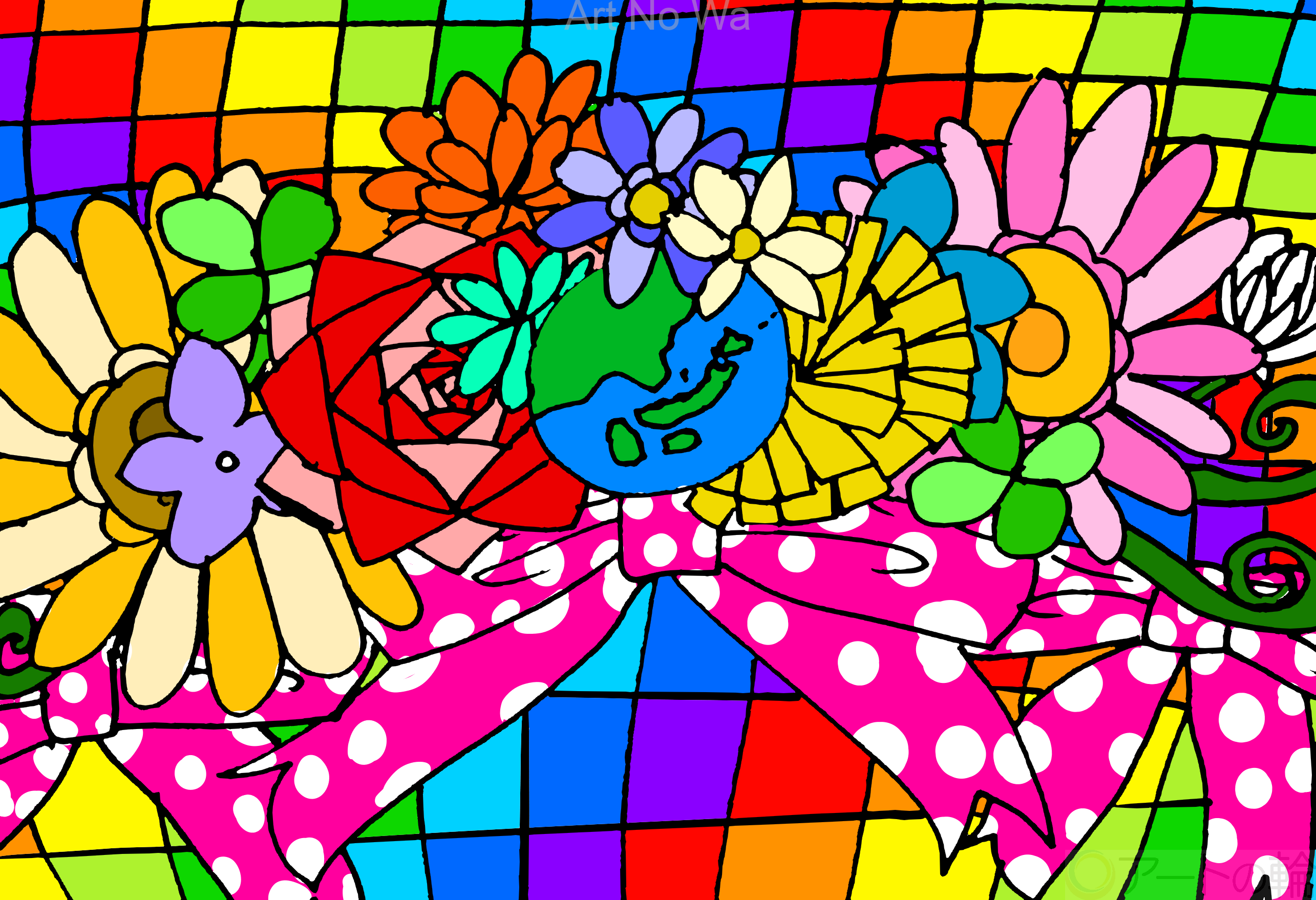 地球が平和であるよう願いながらカラフルに彩って描いてみました。リボンは団結を表現してみました。