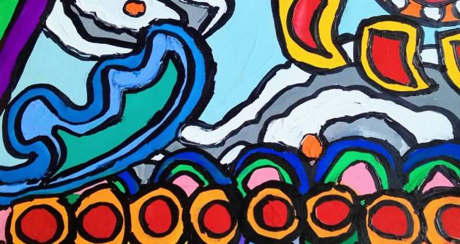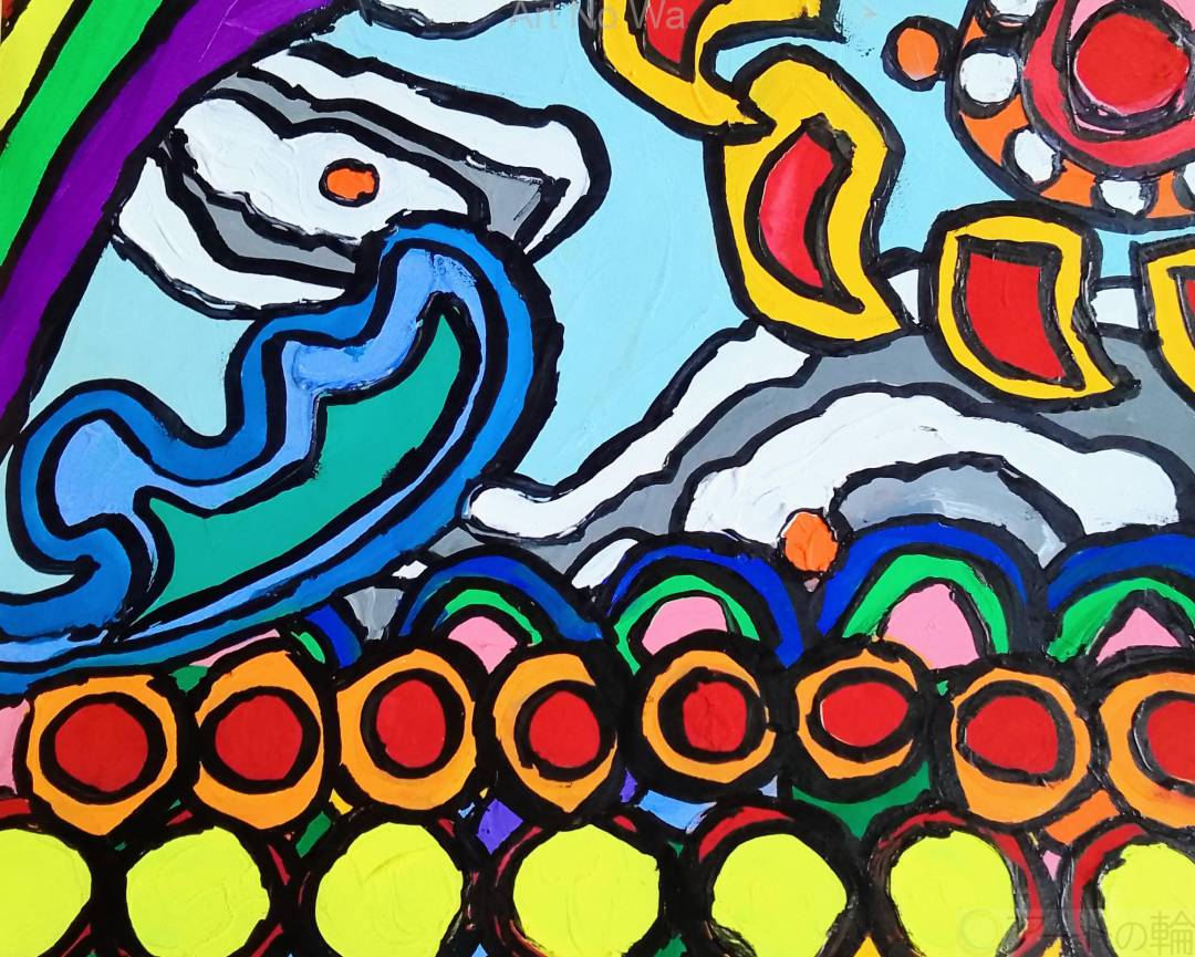 色をカラフルに雲形定規を使いながら明るく描いてみました。