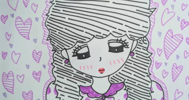 1980年代のパーマヘアの女の子を描きました。昭和レトロなカワイイを表現しました。