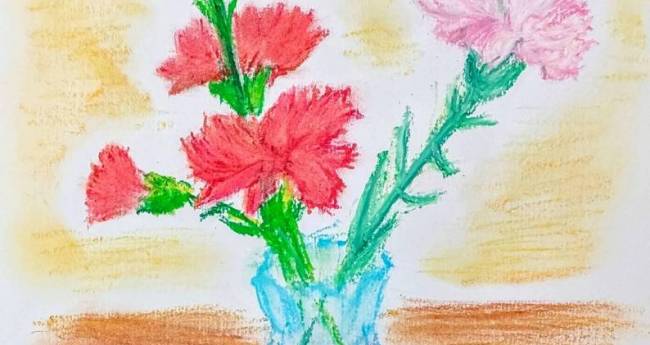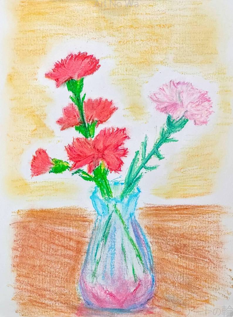 母の日には少し早いですが、サクラクレパスでカーネーションを描いてみました。