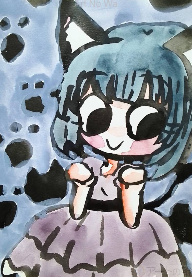 可愛い黒猫の猫耳を付けている、女の子を描いてみました。