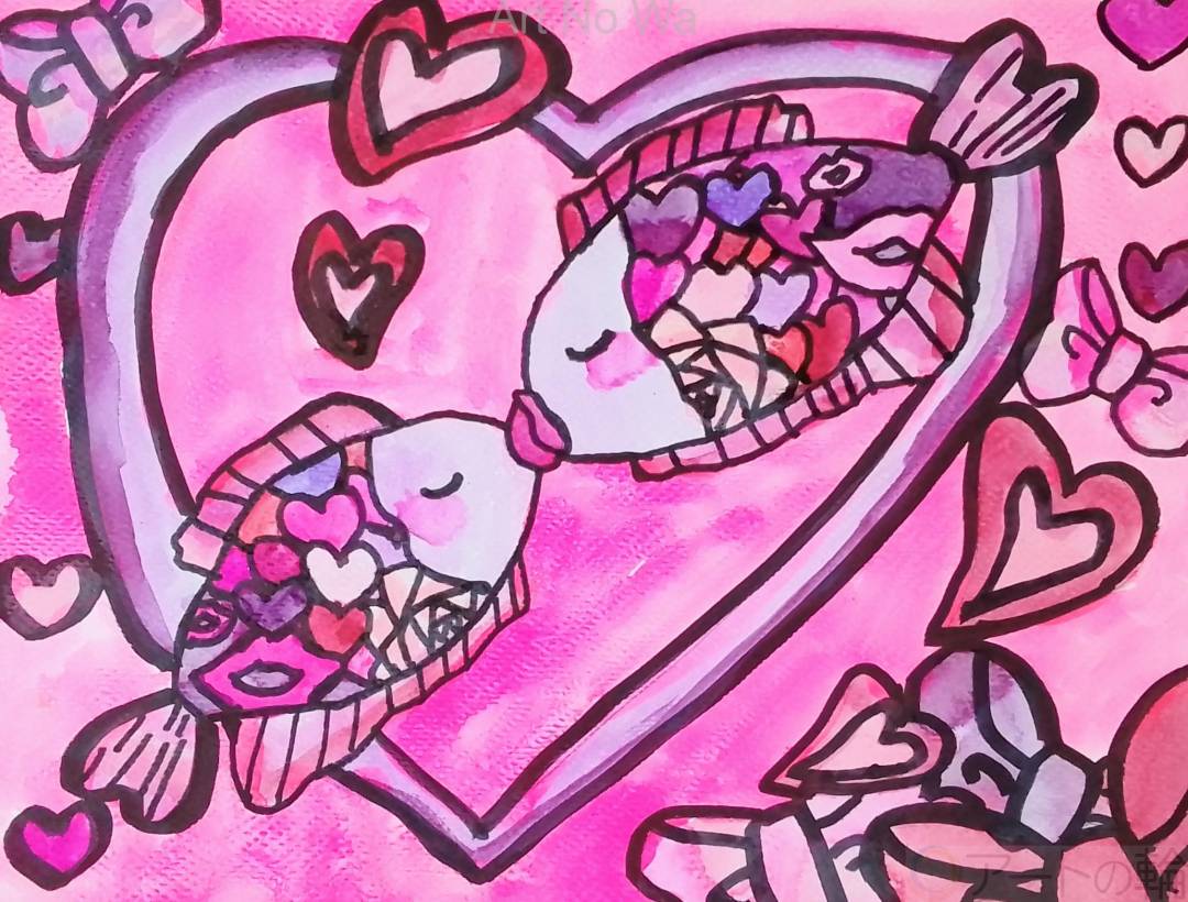魚がお互いキスをしている様子を可愛く描いてみました。