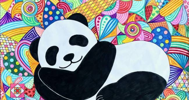 ゆったりとした気持ちで心地よくお昼寝するパンダを描きました。きっとカラフルで素敵な夢を見ていることでしょう。