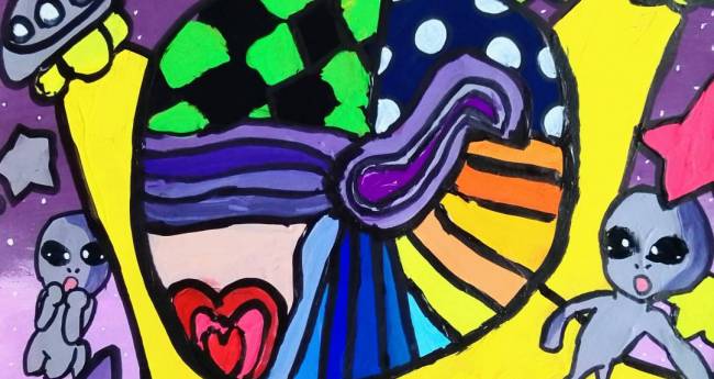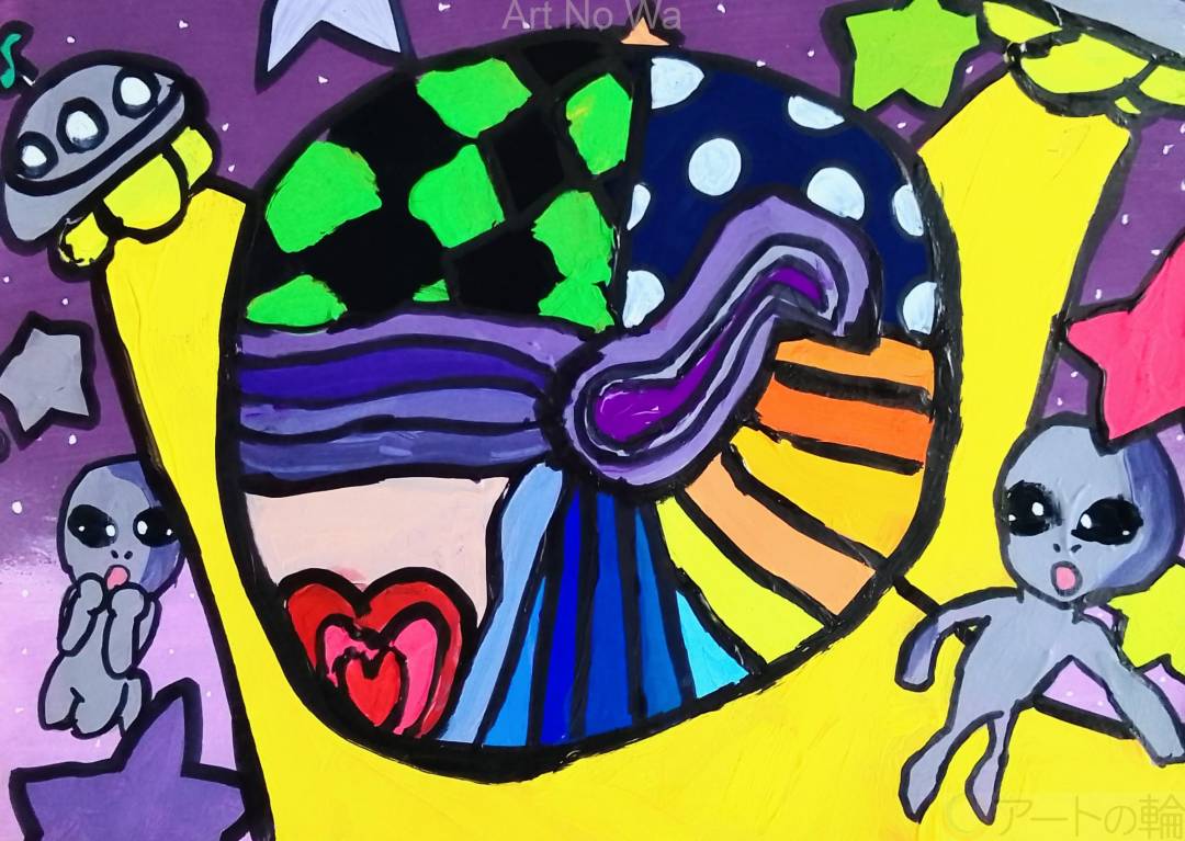 色んな模様が入った不思議な星と宇宙を描いてみました。