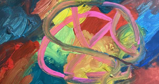 自分で考えた生命力を描きました。自然界の中で生きてゆくことは大変です。色々なカラーで表しました。新しい考えた手方で描きました。ショピングピンク使いました。アクセントになったかな?