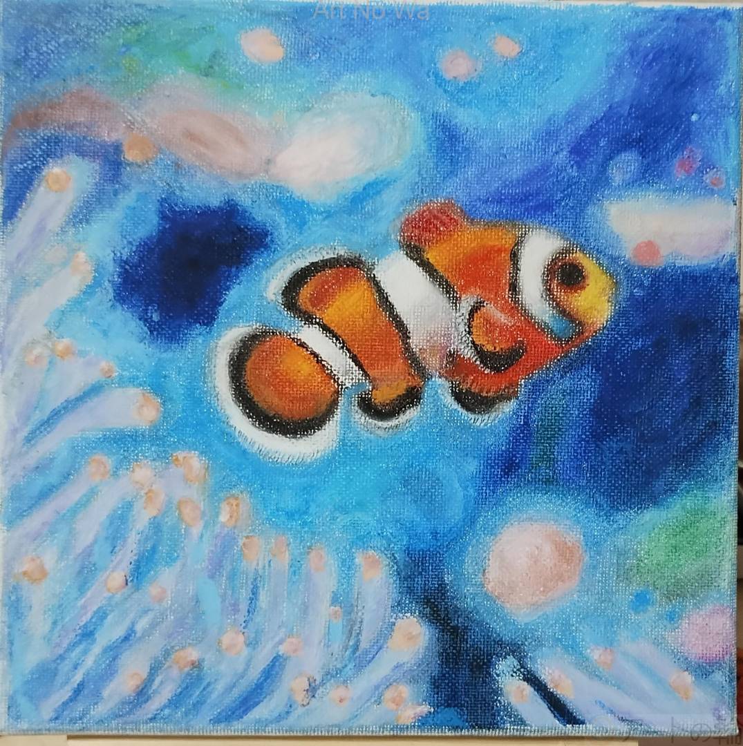 オイルパステルでの初作品です。クマノミが何かを思い佇んでるようにも見えます。