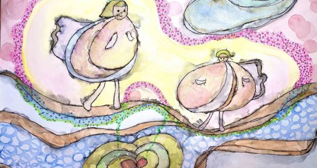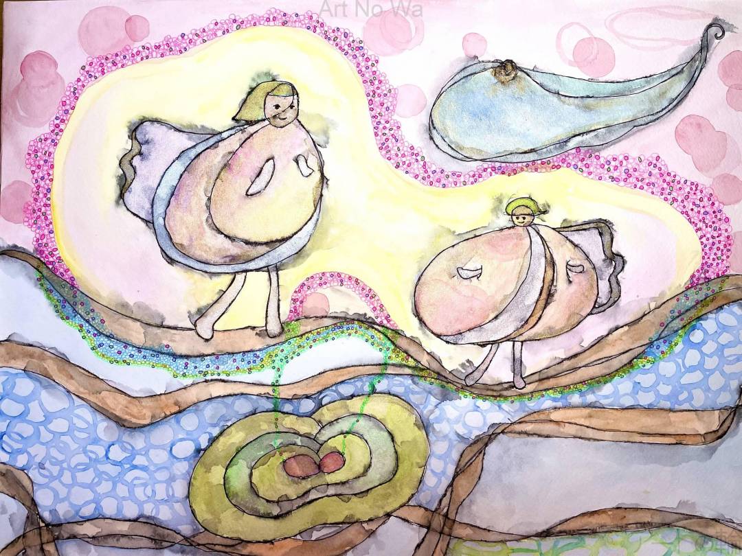 種子から生まれた、豆の妖精の親子。どんな会話をしているのでしょうか。