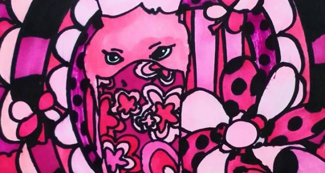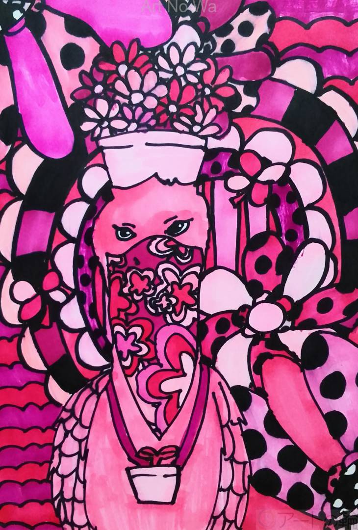 ピンクの花だらけのハシビロコウを可愛く描いてみました。
