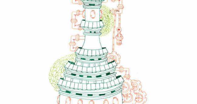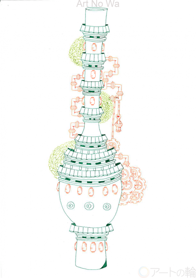 非現実,未来,レトロ,オレンジ,緑,建造物,明るい,たのしい,わくわく,2D