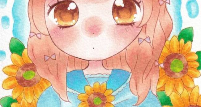 ひまわりと女の子を描きました。水色も入れて夏らしい雰囲気にしました。