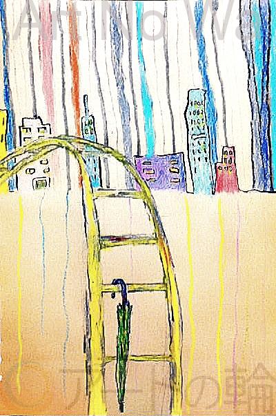 五年くらい前にイメージでスケッチをしていた絵をアレンジして色や雨のような表現を足しました。
