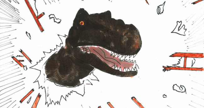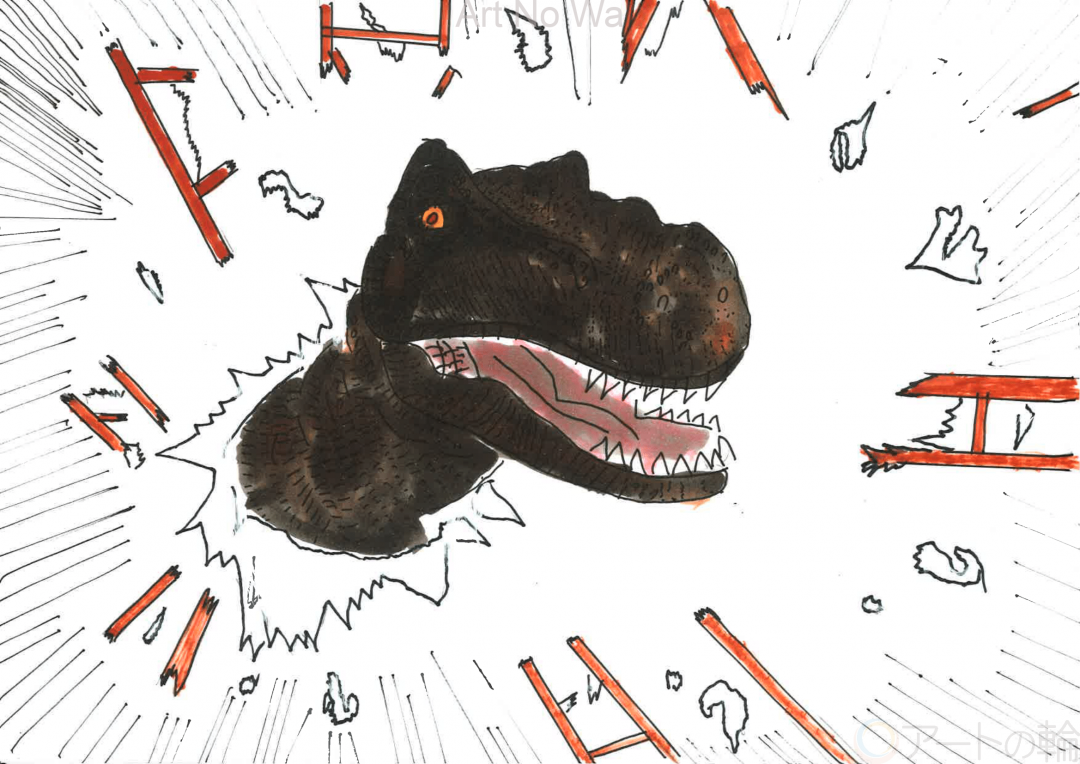 恐竜がもしも現代に生きていたらどうなるかイメージして描きました。