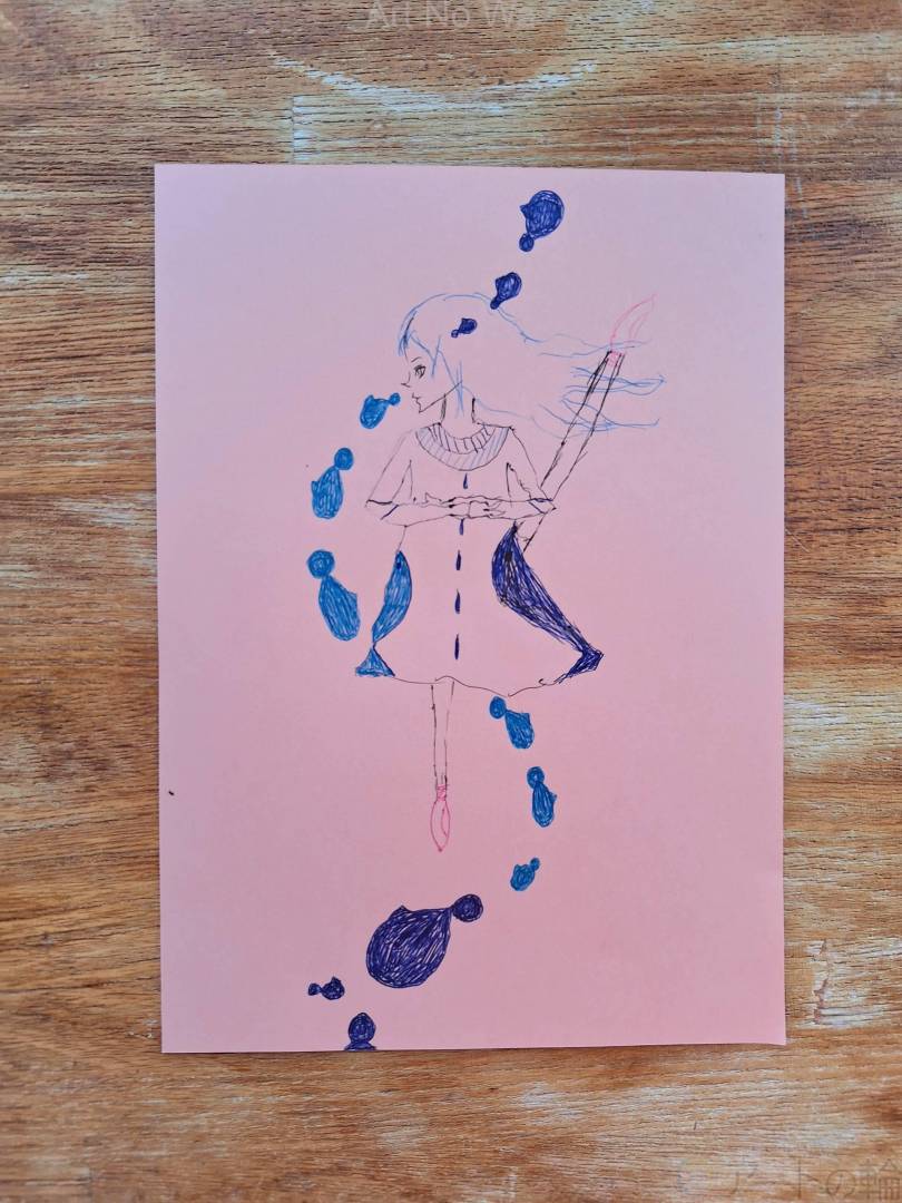 魚の主が歌って踊っていると、ついつい魚たちも踊ってしまいます。 (足の角度が横に上げているのですが、骨格が変に見えるかもしれません)