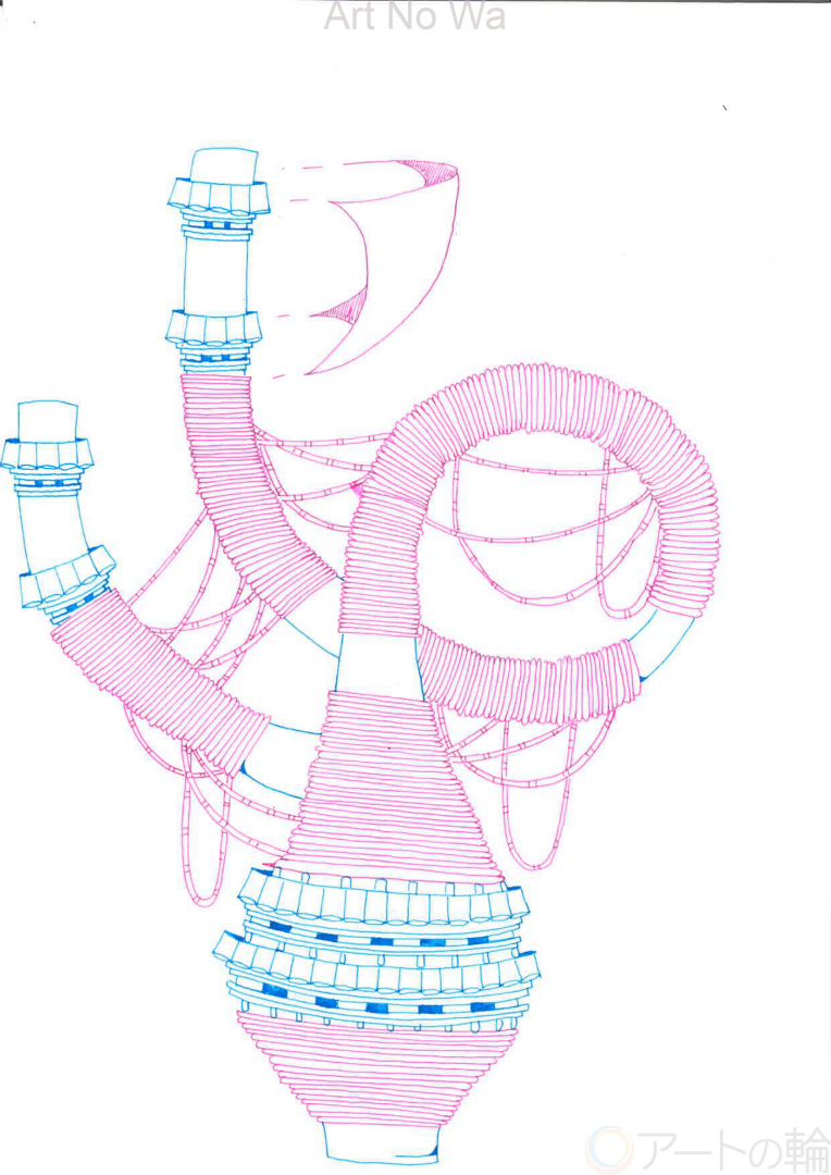 壺に小人が町をたてて暮らしているイメージで描きました。