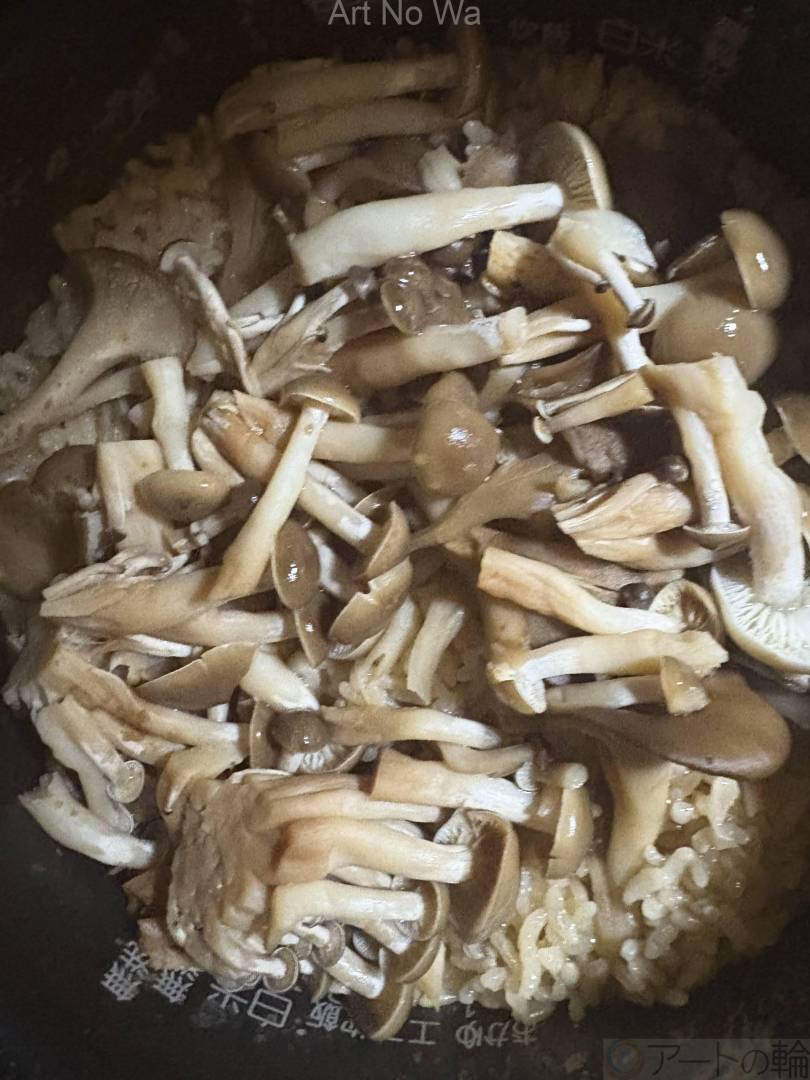 明日スーパー買い出しだから余ってた舞茸とシメジのご飯作った