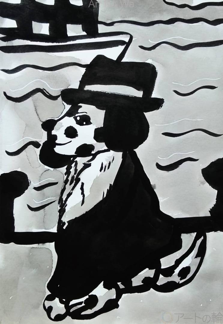 釣り場から海に思いを寄せているダルメシアンの犬をレトロな感じで描いてみました。