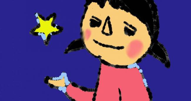 かわいい、ホッとする、落ち着き感.あるスターを手にする.雫が滴り落ちる.彼女の夢、朝起きて絵を書いて寝るまで書くことである、好きなものがある彼女は幸せなんだよ
