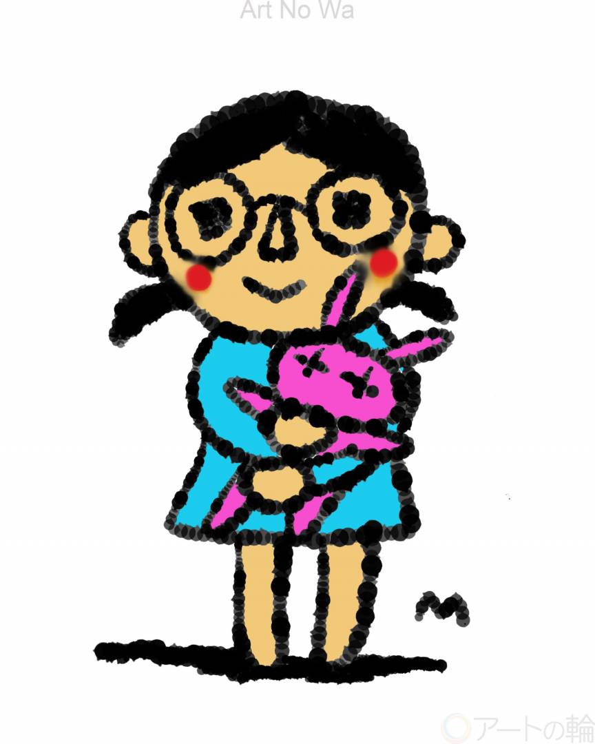 かわいい、ホッとする、落ち着き感.私のオリジナルキャラクターであり.絵本出版をした ポポリちゃんです.私の心の支えです.十字の目のピンクの肌の優しい女の子 うさぎちゃんです。