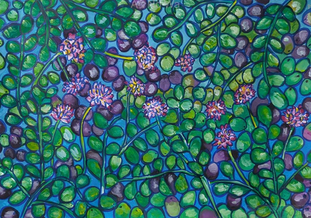 田んぼに咲いている蓮華が綺麗だから描いてみた。