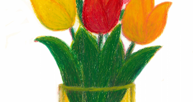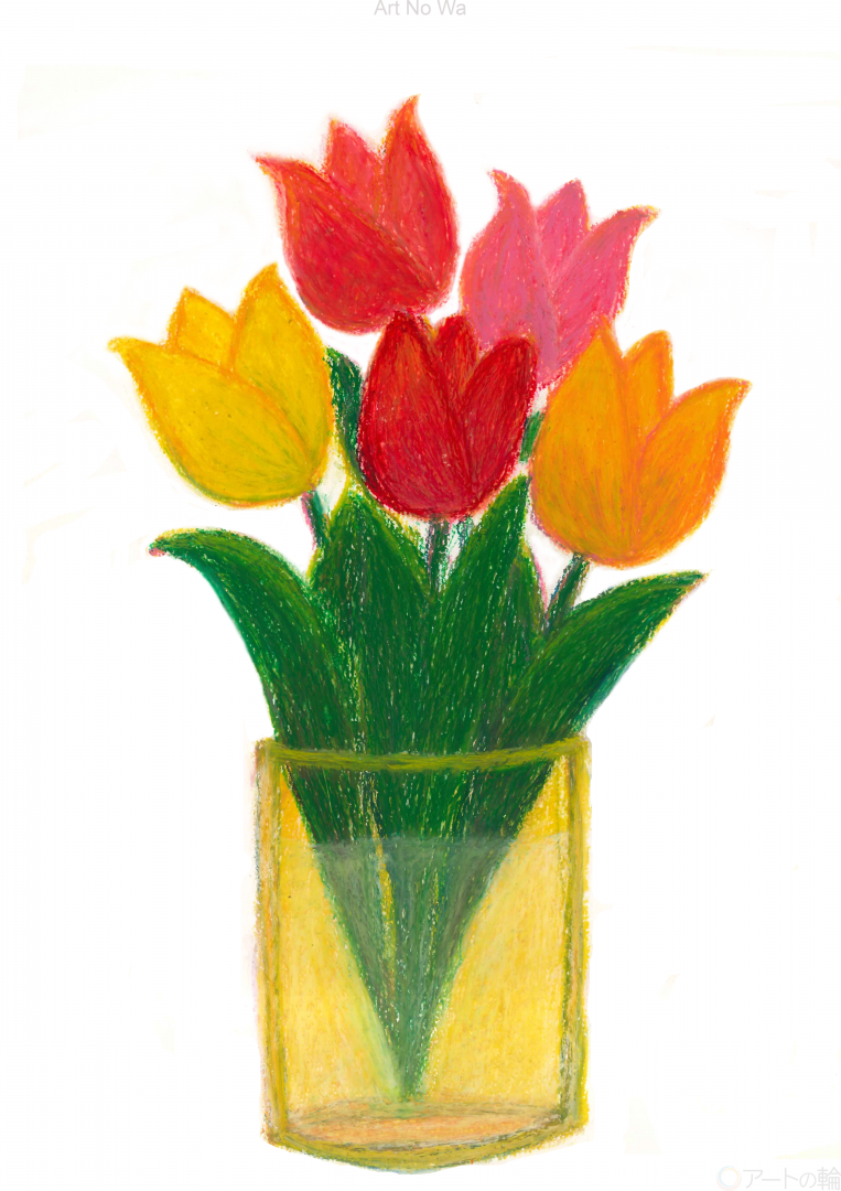 チューリップの生き生きとした感じや、花瓶の透明感を出せるように工夫しました。
