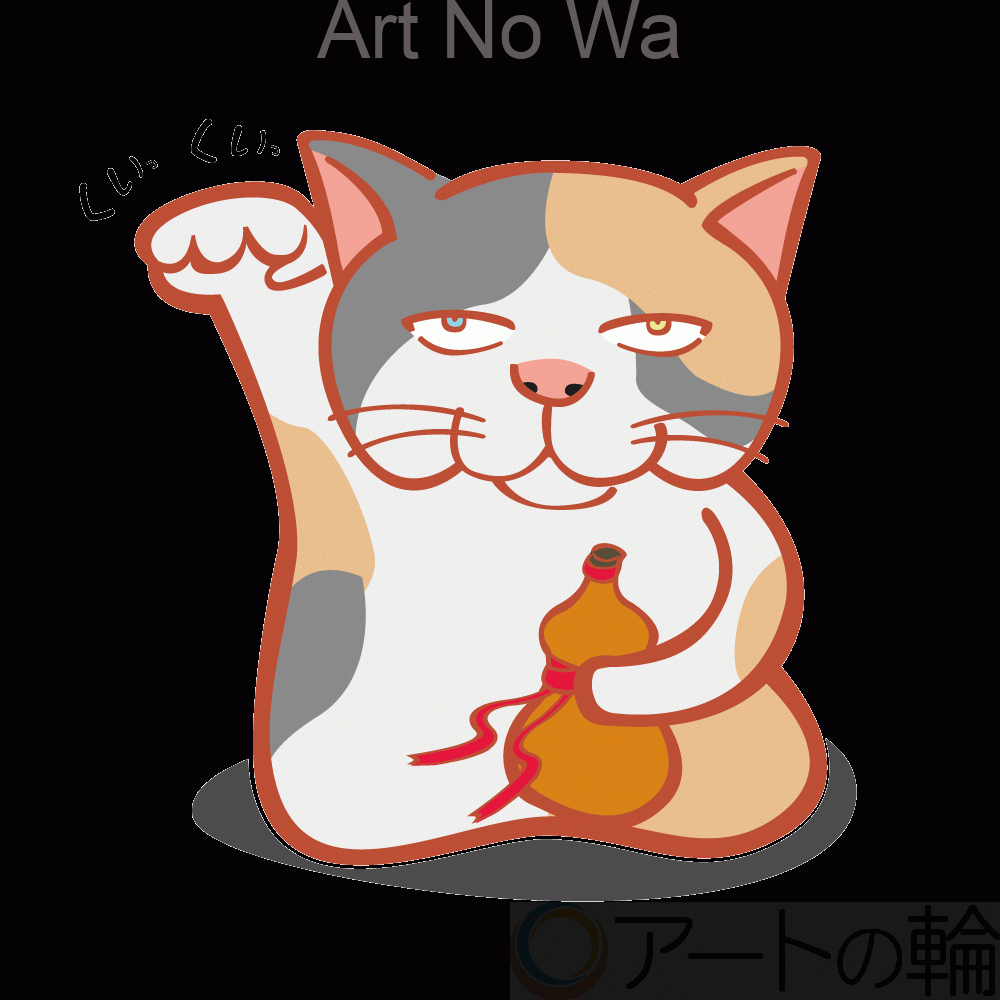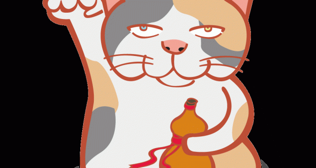 お酒を呑みながら近くを歩く人を招いてる猫を描きました。