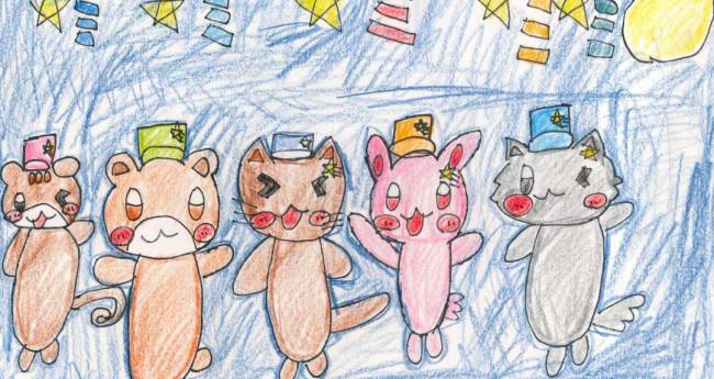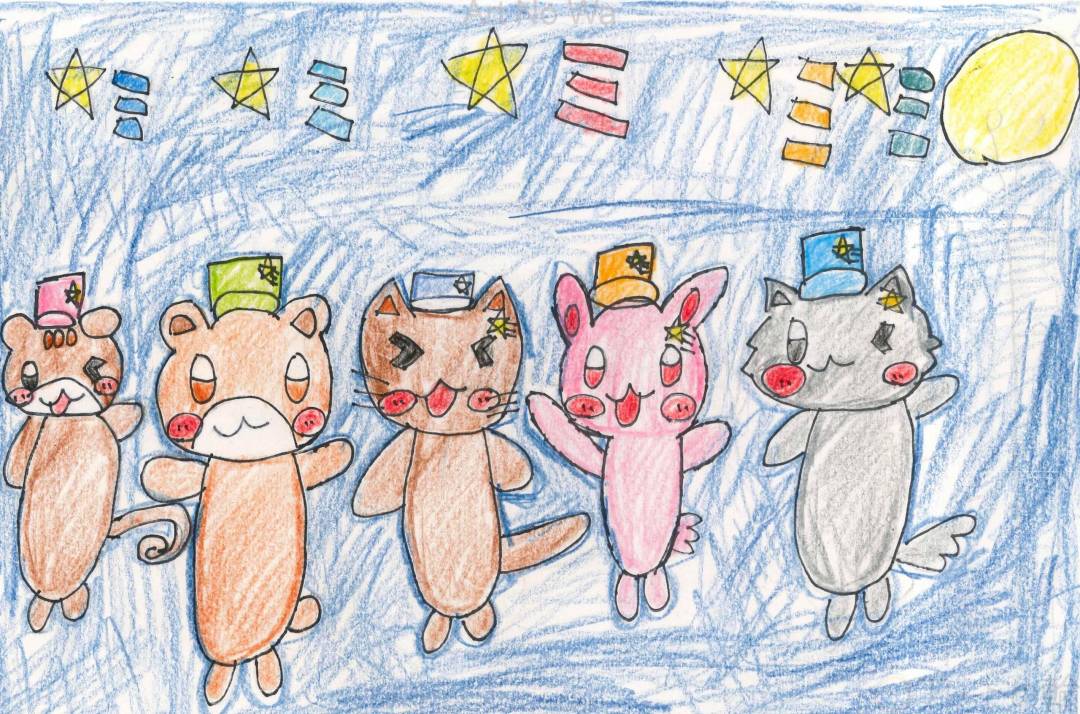 動物たちが仲良く七夕パーティーをしてご機嫌です。